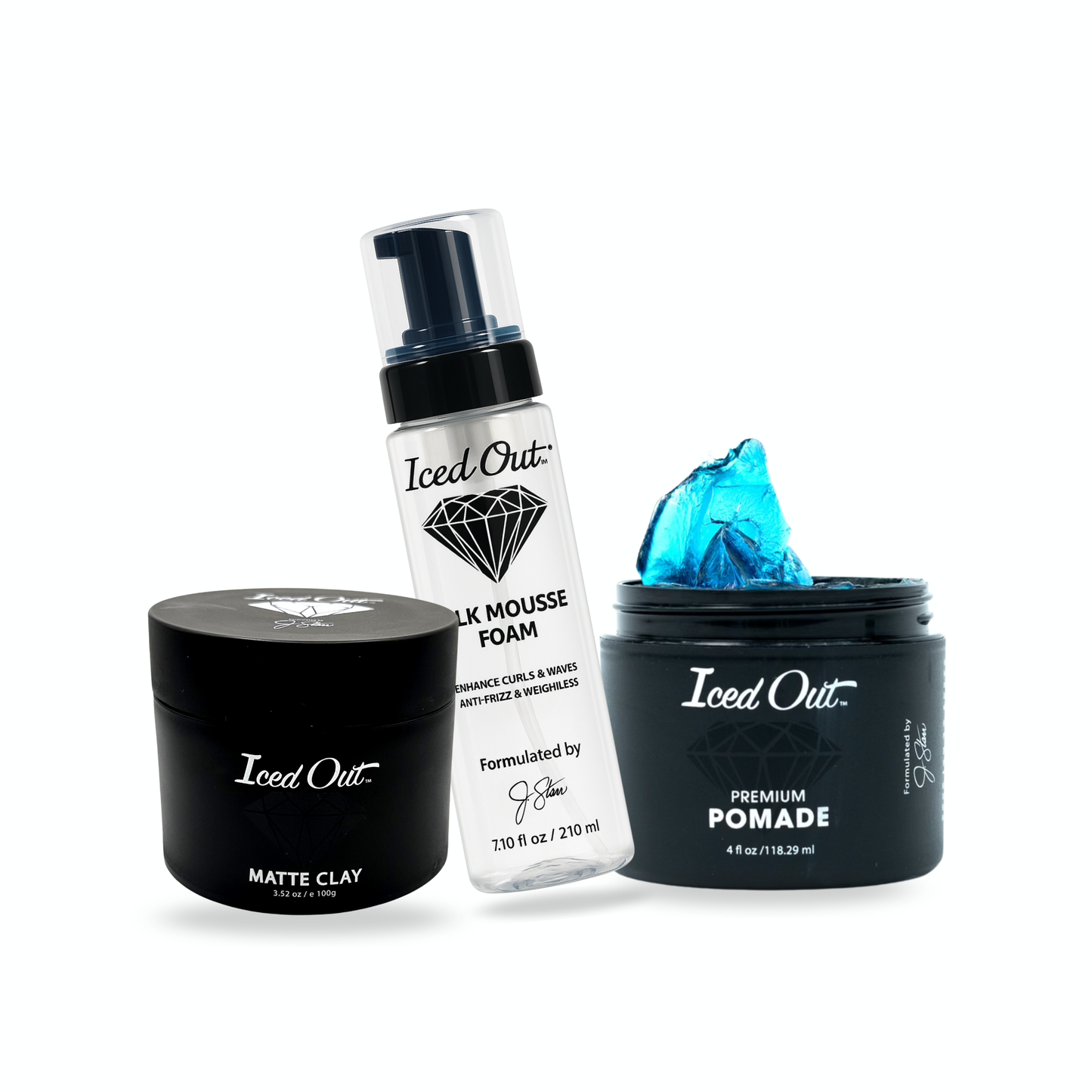 Iced Out Premium Pomade – delivers firm hold, high definition and texture for straight, wavy or curly hair.