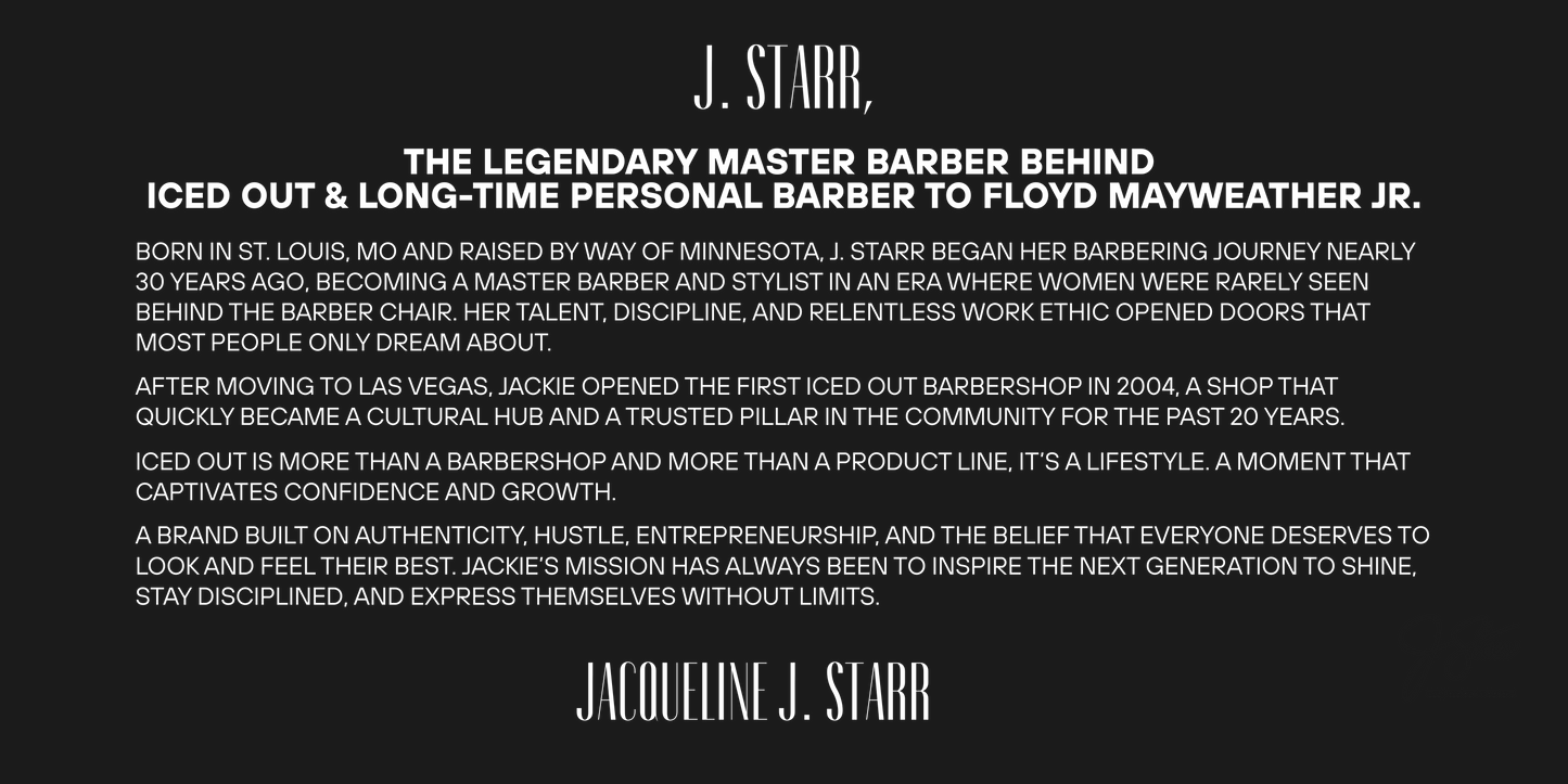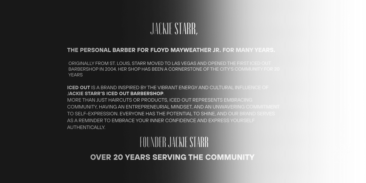 Iced Out is a brand inspired by the vibrant energy and cultural influence of Jackie Starr’s Iced Out Barbershop. More than just haircuts or products, Iced Out represents embracing community, having an entrepreneurial mindset, and an unwavering commitment to self-expression. Everyone has the potential to shine, and our brand serves as a reminder to embrace your inner confidence and express yourself authentically.